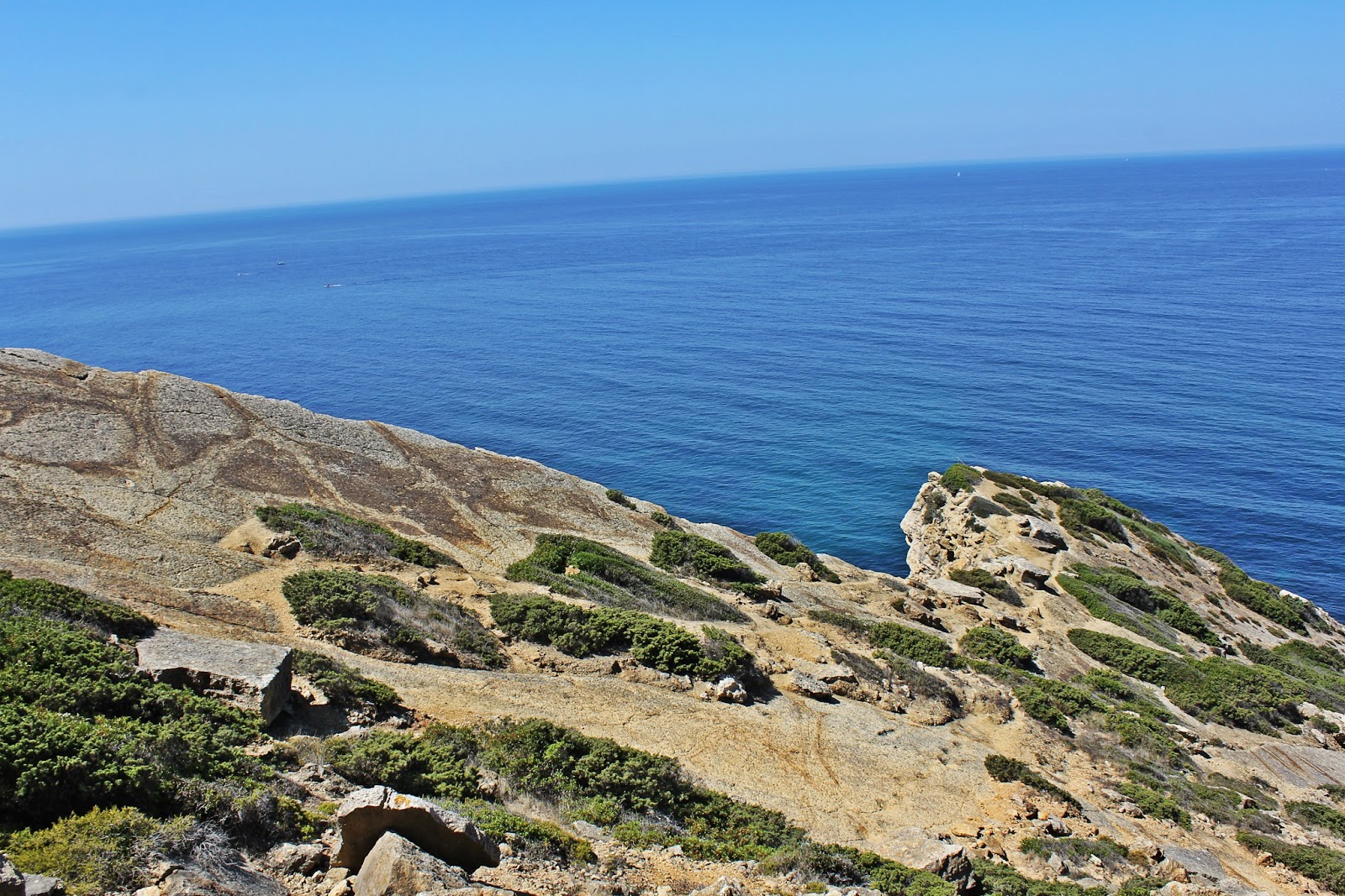 No dia das pegadas de dinossauro desejei não andar mais. Estava decidido, queria passar os dias deitada ao sol numa praia de areias brancas e águas cristalinas a ler livros. Queria, mas nós não somos assim, pois não? Não nos bastou a caminhada no Cabo Espichel na torreira do sol à procura de pégadas de dinossauro que não passavam de buracos nas escarpas das arribas. Buracos que podiam ter sido feitos por qualquer um ou qualquer coisa, mas que afinal parece que um dia alguém comprovou cientificamente que são de dinossauros. Pegadas essas que ficaram registadas na segunda fotografia abaixo deste parágrafo de texto mas que ninguém vai conseguir ver, assim como nós não conseguimos ver quando lá chegámos e tivemos que nos socorrer das legendas do painel informativo.