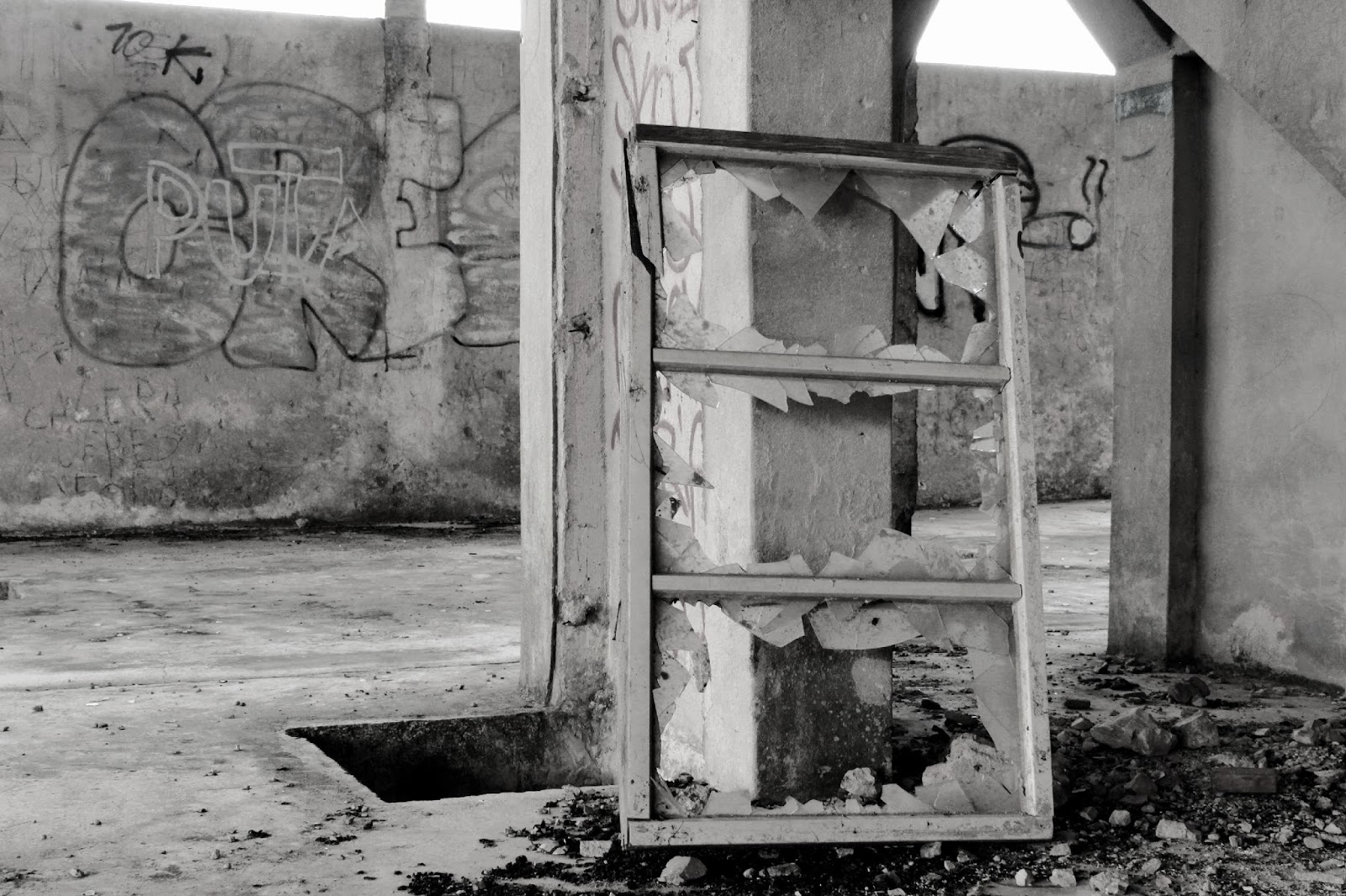 EliminarJá tinha comentado com a Catarina que acho as zonas industriais super interessantes de fotografar, e se tiverem ainda as máquinas melhor ainda! Gostei bastante das fotos a preto e branco, e daquela com o pormenor dos vidros no chão! Apesar de ser um sitio com a sua destruição, penso que aqueles desenhos estão tão fofos nas paredes! :)
